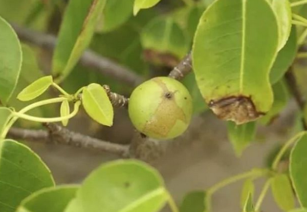 Плодот што го пробале им припаѓа на дрвјата „Hippomane mancinella“, кои понекогаш се нарекуваат „јаболко на плажа“ или „отровна гуава“. Растението потекнува од тропските делови на јужниот дел на Северна Америка, а го има и во Централна Америка, на Карибите и во делови од Јужна Америка.