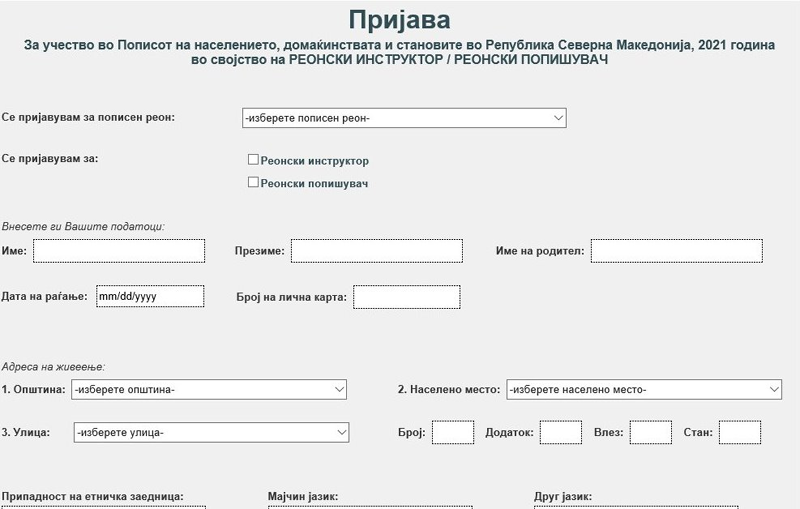 Заводот за статистика објави и електронска пријава за учество во пописот во својство на реонски инструктор/реонски попишувач, која, доколку сте заинтересирани, можете да ја пополните
