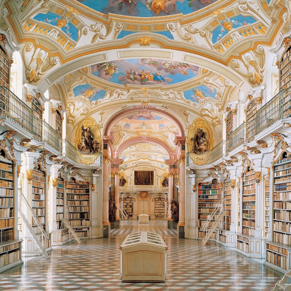 Библиотеките се непроценлив извор на знаење. Многу од нив, покрај богатството на содржината, ги воодушевуваат љубителите на книгите и со својот грандиозен изглед, како што е библиотеката „Адмонт Аби“ во Австрија.
