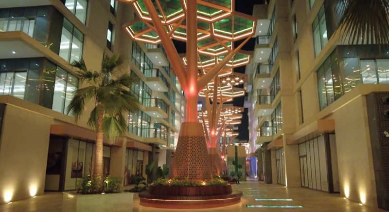 „Кристална прошетка“ е регион покриен со структура што личи на крошна на дрво. Овие структури имаат двојна функција: обезбедуваат сенка и помагаат да се задржи оладениот воздух што се шири низ отворите за вентилација на подот. Со други зборови, студениот воздух не се дисперзира во атмосферата, туку е заробен под крошната, создавајќи микроклима погодна за престој и прошетка, дури и во средината на летото.