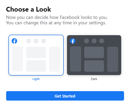 Веќе на следниот прозорец што ќе ви се отвори можете да одберете како сакате да ви изгледа почетната страница - светла или темна. Откако ќе изберете, кликнете на „Get Started“.