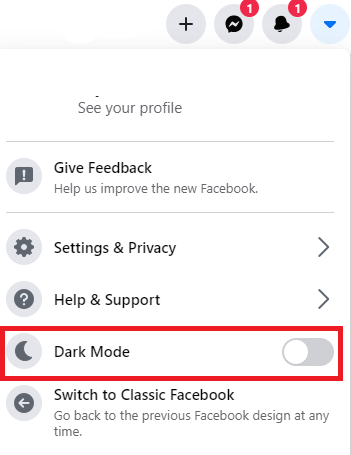 За да се префрлите на новиот, темен изглед на вашата омилена социјална мрежа, најпрвин треба да кликнете на триаголничето во горниот десен агол на екранот и да кликнете на Switch to New Facebook, што во превод значи: Префрли се на нов „Фејсбук“.