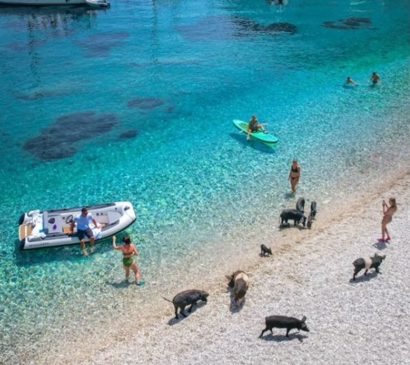 На една од таквите плажи можете да уживате во друштво на копнени животни - прасиња и богат подводен свет. Како прасињата стигнале на островот е голема мистерија. Сепак, без разлика како се појавиле, тие станаа главна туристичка атракција. Доколку се одлучите да го посетите овој остров, мора да се грижите за неговата природа - не смеете да ја загадувате во никој случај.