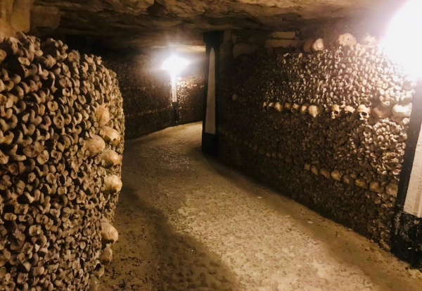 Ова место, кое последниве години стана неизбежна туристичка атракција, содржи околу седум милиони скелетни останки на поранешни жители на Париз кои морале да бидат преместени бидејќи гробиштата биле преполни на почетокот на 18 век.