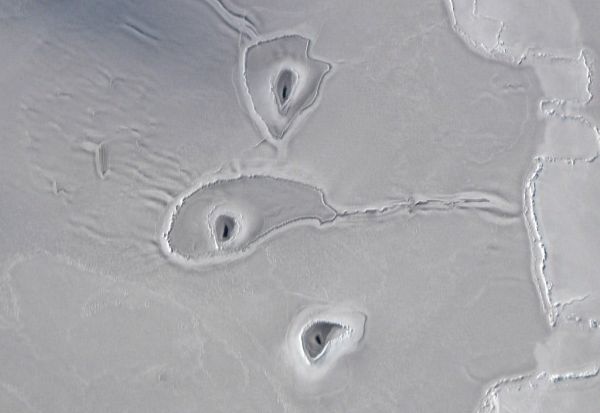 - Кружните белези може да се поради брановите вода што излегуваат над снегот и мразот кога фоките излегуваат. Или може да се вид дренажни белези кои се појавуваат кога ќе се направи дупка на мразот - вели океанографот и климатолог Валт Мејер.