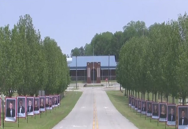 Вест ги зголемила фотографиите од средношколците, ги отпечатила и ги поставила на обете страни од патот до училиштето во Грејсвил. Сега лицата на 30 насмеани матуранти ги поздравуваат возачите што поминуваат по овој пат.