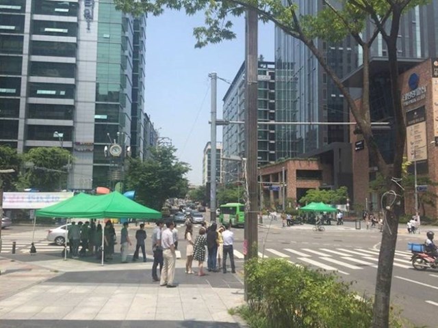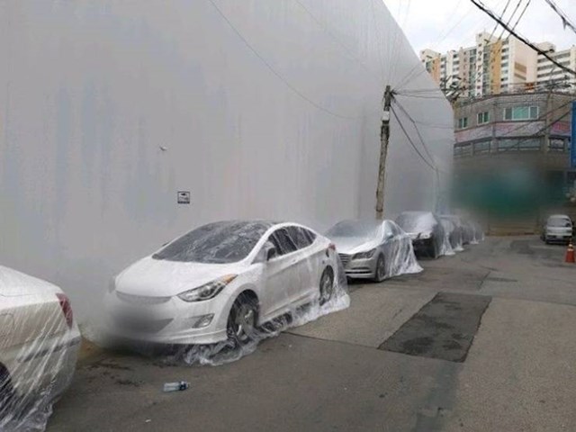 Додека се гради нешто во Јужна Кореја, се внимава на соседите така што нивните автомобили се штитат од прашина.