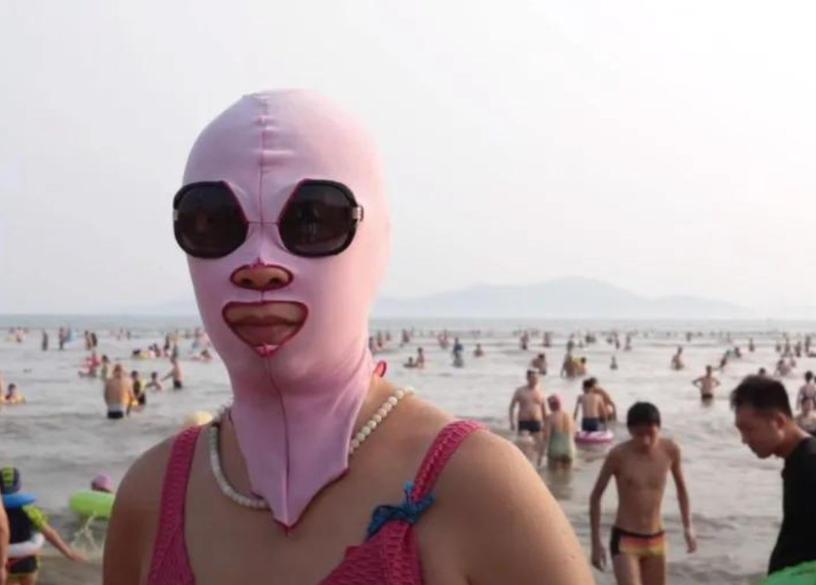 Луѓето во Кина измислиле начин за заштита од екстремно високите температури. Станува збор за маска за лицето која е хит на плажите во Кина.