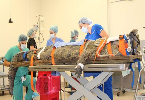 Крокодил долг речиси 3 метри и тежок 158 килограми закрепнува од успешна операција, по два месеца откако голтнал чевел на турист.