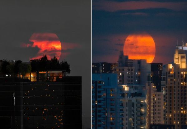Втората полна месечина во 2024 година на северната хемисфера се појави пред два дена и беше фотографирана од луѓето од целиот свет, појавувајќи се на исток во драматичен пламен на бои.