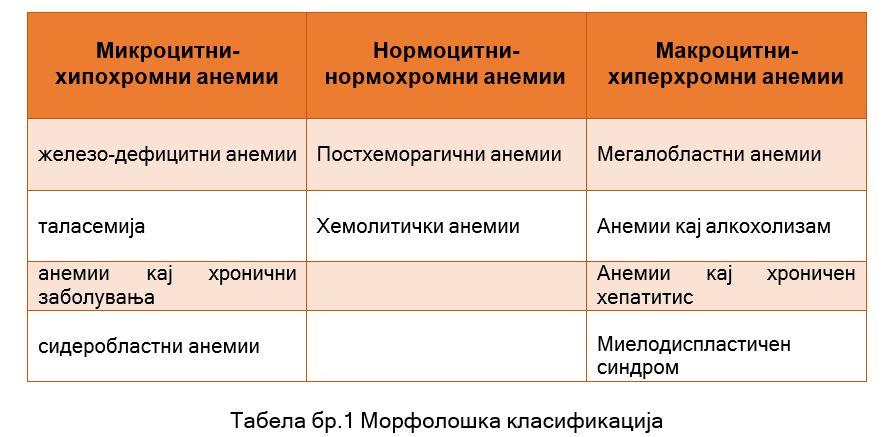 Според морфолошката класификација на анемиите, тие се поделени во 3 групи:
