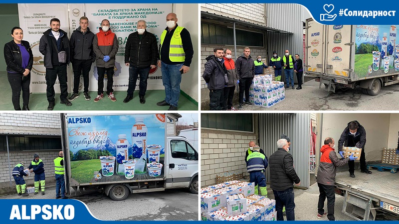 Алпско во соработка со Општина Центар и невладината организација „Банка за храна“ реализираа донација од 2.300 парчиња млеко, јогурт и кисело млеко без лактоза од „Алпско“ за социјално загрозените семејства од оваа општина.