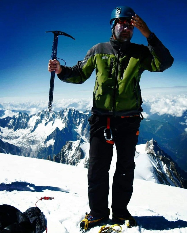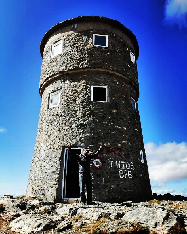 Прво што прави кога стигнува на врв е да се фотографира и да си направи неколку фотографии за својата фотоархива. А потоа ужива во погледот.