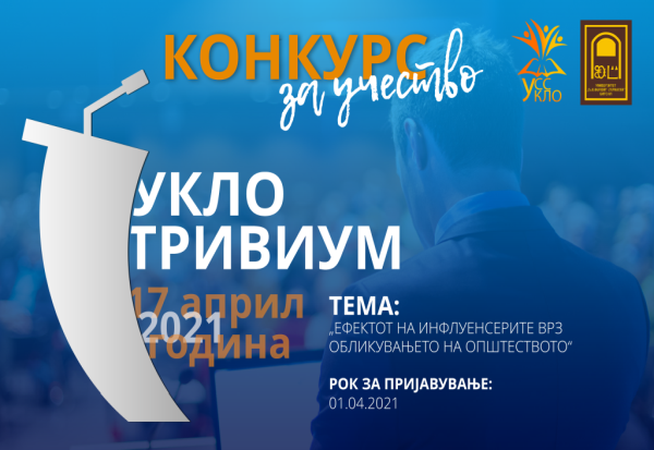 Во рамките на активностите на УСС, на 17.04.2021 година (сабота) се организира УКЛО ТРИВИУМ Ораторски натпревар на тема „Ефектот на инфлуенсерите врз обликувањето на општеството“.