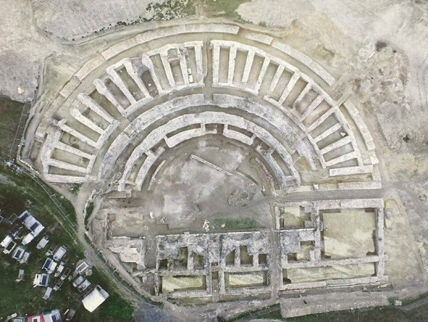 Во текот на археолошките ископувања археолозите открија многу културни слоеви, градби и археолошки предмети. Регистрирани се неколку различни фази на живеење на овој простор. Најраните траги се од железното време, 8-7 век пред новата ера. Од овој период пронајдени се два гроба, кои во минатото биле делумно уништени со подоцнежната изградба на театарот. Следуваат слоевите од доцноантичкиот период - времето откако завршило функционирањето на театарот, кон крајот на 4 век. Тогаш на просторот била изградена населба, која во неколку фази траела до 6 век.