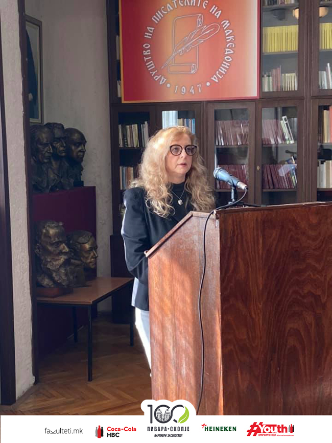 - Следниот месец се заокружува мојот мандат како претседател на Друштвото на писатели на Македонија, асоцијација која има исклучително значење за македонската култура. Тоа е нашата најстара писателска асоцијација, формирана пред 75 години од бардовите на македонската современа литература. Друштвото е неопходна алка во механизмот на книжевниот живот затоа што претставува полигон на кој писателите по еснафска линија можат да разменуваат мислења, да водат полемики, да се натпреваруваат во своите креативни дострели, аргументирано да се критикуваат, да едуцираат книжевна публика и многу други нешта битни за една здрава и разгранета култура. Друштвото е и една ретка можност за книжевните творци, кои по природата на нештата се индивидуалци, да се сплотат во нешто што значи тимско функционирање, во смисла на креирање заеднички ставови во однос на проблеми што ја засегаат писателската дејност. Особено во оваа турбулентна доба на глобализација, писателската асоцијација е една од институциите, иако само на ниво на граѓанско здружение, што имаат неоспорно значење во негувањето и афирмацијата на македонскиот јазик и култура.