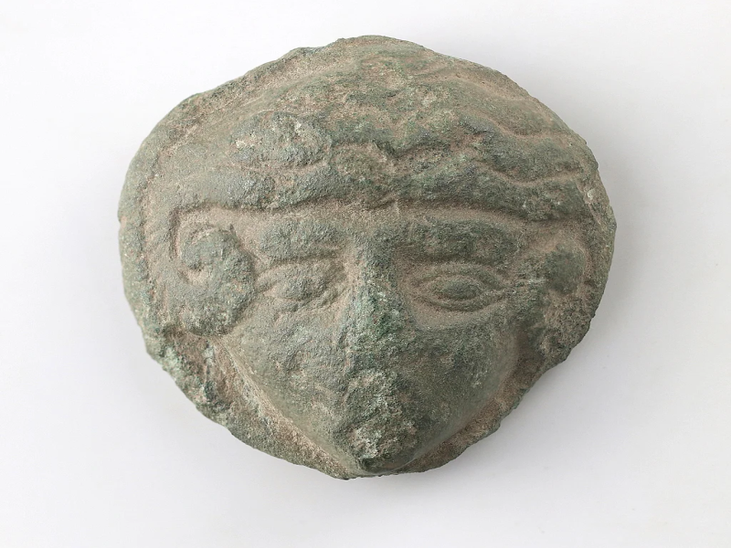Бронзената легура содржи високи нивоа на олово и е направена со помош на легура која често се наоѓа во римските бронзени статуи, што сугерира дека била стопена статуетка за да се направи овој портрет. Иако археолозите сè уште не се сигурни за точната функција на овој артефакт, тие веруваат дека датира од околу 200 година од нашата ера и може да се користи како декоративен диск за штит.
