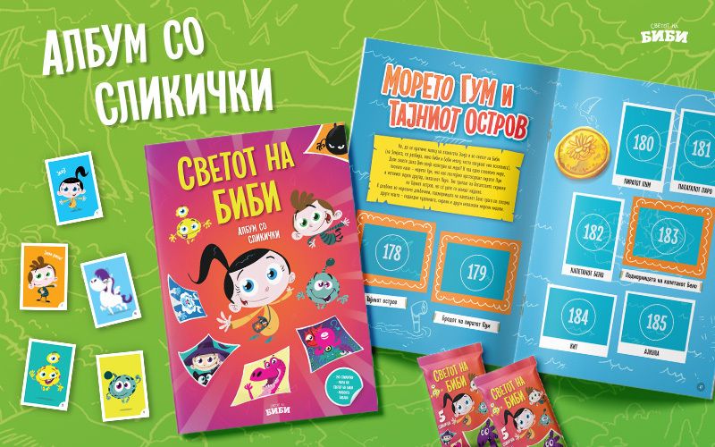 video.bibi.mk ќе добијат и ГРАТИС албум за самолепливи сликички „Светот на Биби“. Албумот ќе може да се подигне во сите продавници на „Светот на Биби“ почнувајќи од 27 јули.