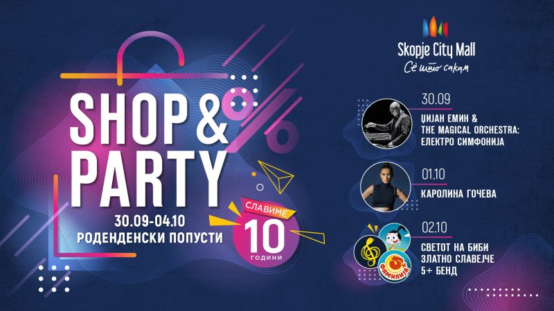 Со голема роденденска прослава и огромни попусти, како што му доликува на најомилениот трговски центар во главниот град, „Скопје сити мол“ го одбележува десетгодишниот јубилеј. Со концерти и забава приспособена на различни вкусови и возрасни групи, „Скопје сити мол“ ќе ги прослави првите 10 години од своето постоење. Од огнено шоу, огромни маскоти, фотобут за суперфотки, детска програма до големи концерти, овој викенд сите сме во „Скопје сити мол“.