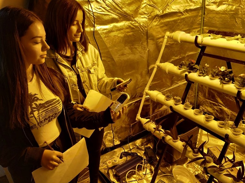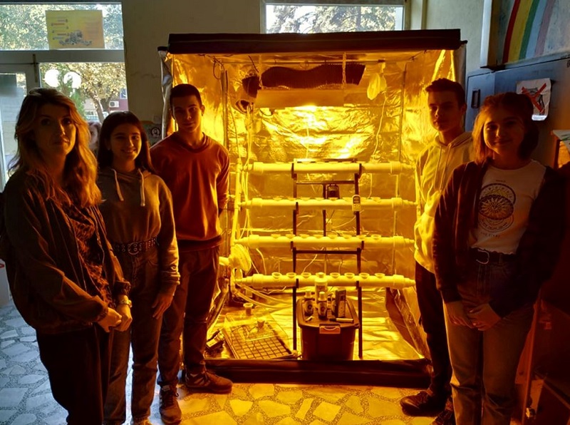 - Хидропоника е метод на одгледување растенија во вода збогатена со хранливи материи наместо во почва. Растенијата се поздрави и имаат побрз развој. Се користи енергијата од соларен панел за светлина со тајмер за постојано осветлување, која дава спектар на бои кои се важни за фотосинтеза. Растенија се сместуваат во посебни чашки со хидратон глинени пелети. Претходно во собни кутии поставуваме семиња и кога ќе достигнат големина на стебло, ги префрламе во системот. Така добиваме целосен преглед на растението од неговиот корен до неговите стебла, листови и цветови. Растенијата добиени со овој метод можат да бидат користени за лабораториски експерименти и истражувања за да се докаже дека тие што се засадени со хидропоничниот систем се попродуктивни и имаат подобри карактеристики бидејќи се во контролирана средина. Целиот систем е поставен во кутија grow box која има рефлектирачка фолија за целосно осветлување и простор на растението важен во процесот на растење - објаснува Поп Глигорова.