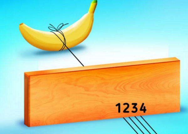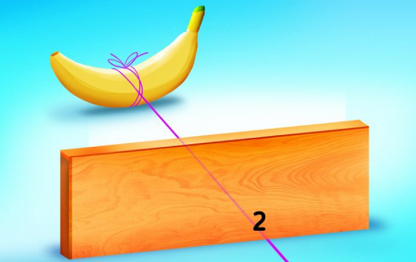 Во задачата во продолжение треба да откриете кој конец води до бананата. Одговорот ќе го пронајдете подолу.