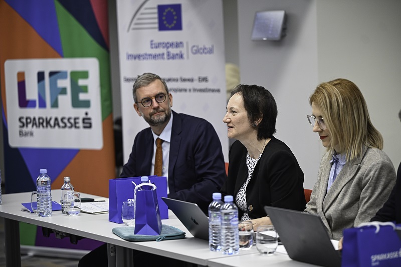 Работилницата се одржа во просториите на Банката, а со оваа стратегија на поддршка и соработка, ЕИБ и Шпаркасе Банка ја потврдуваат заедничката посветеност на унапредување на зеленото финансирање и климатската стабилност во Република Северна Македонија и на глобално ниво.