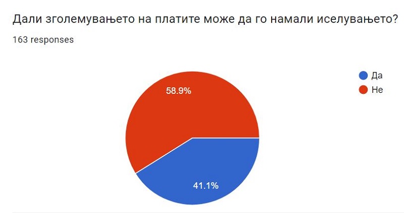 Во меѓувреме, 58,9 отсто од испитаниците велат дека ниту зголемувањето на платите не може да го намали иселувањето, а преостанатите 41,1 отсто се оптимисти и веруваат дека тоа може да се случи.