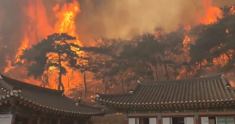 Видеата објавени на социјалните мрежи покажуваат како пожарите пламнуваат и уништуваат историски храмови стари илјада години во Јужна Кореја, додека пожарникарите се борат да ги спасат културните артефакти во земјата од пожарот.