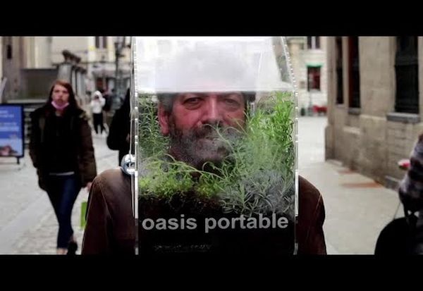 Наместо маска, еден белгиски уметник носи мала стаклена градина на главата, која му обезбедува чист воздух, а истовремено го штити од инфекција.