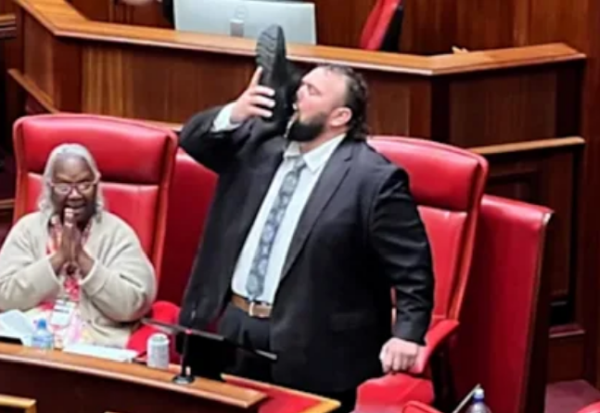Пратеникот Кајл Мекгин имаше сосема необично збогување при неговиот проштален говор во парламентот на Западна Австралија. Имено, тој испи пијалак од сопствениот чевел.