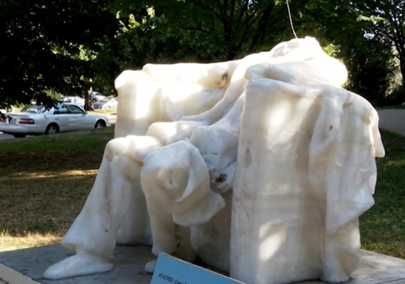 Главата на восочната скулптура, која е висока шест метри, се преработува, а од вратот излегуваат само жици. Во изминатите неколку дена метеоролозите во САД предупредуваа на топлотен бран во градовите на источниот брег, со температури до 40 Целзиусови степени. Споменикот на 14. американски претседател се наоѓа во Баркер, поранешен бегалски камп од Граѓанската војна, каде што Афроамериканците биле робови, а потоа и ослободени.