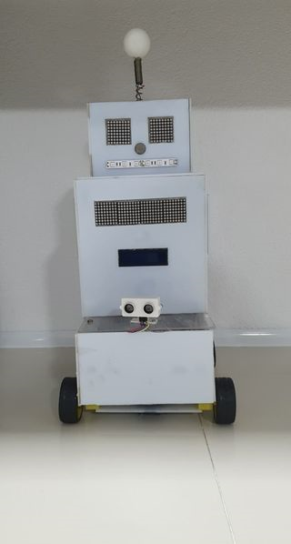- Поради нашиот интерес кон роботите, јас и мојата соученичка Наиле направиме наш прототип на робот коj реагира на гласовни наредби. Тој прима наредби преку блутут со апликација „Андроид“ и извршува некаква реакција (според наредбата што ќе ја добие), како и преку вај-фај со посебна апликација (преку сервер). Роботот се движи самостојно и има контрола да не се судри со предмет или ѕид. На носот има Gas сензор, кој кога детектира одреден гас,ЛЕД-светилка на делот на ушите свети црвено и се слуша звук како предупредување за опасност. Има светла и сирена, кои се активираат кога ќе му се нареди. Има можност да следи линија со помош на Тracking Sensor. На телото има ЛЦД-дисплеј, на кој се прикажуваат температурата и влажноста - објаснува Антонио.
