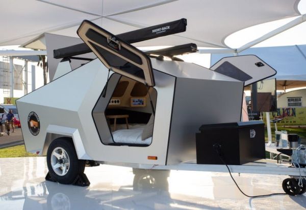 Алуминиумска приколка за автомобил во која може да живеете е производ на „Полидроп“. Еднособниот простор содржи практично сè што ви е потребно за живот, вклучувајќи и кујна на отворено, кревет, ЛЕД-осветлување, термостат, полнач за уреди што користи УСБ...