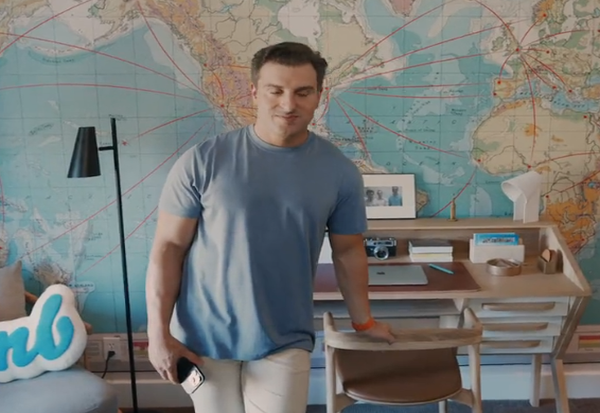 На видеото се гледа како Чески слегува по скали со своето куче и ги фотографира дневната соба и спалната соба кои се слободни за резервација.
