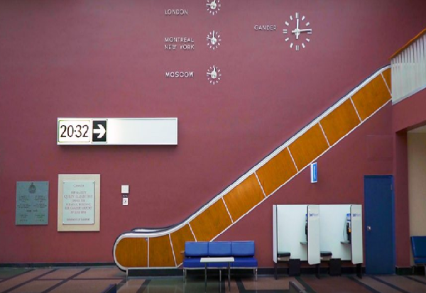 Во минатото Гандер бил како Панамскиот Канал. Сите маршрути воделе низ Гандер, а токму тоа било причината да се изгради аеродром. Салонот во аеродромот е сличен како совршена временска капсула, особено затоа што беше отворен со благослов на кралицата во 1959 година.