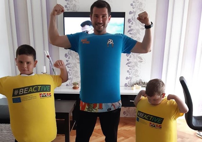 Дарко Коцев е магистер по кинезиологија. Во време на пандемија од коронавирус, кога е препорачливо сите да сме во домашни услови, во недостиг на физичка активност на децата, предлага неколку активности, забавни игри реализирани со реквизити и помагала што ги имаме дома - маси, столчиња, детски играчки, перници, крпи, шишиња за вода, овошје и други предмети што можат да помогнат.