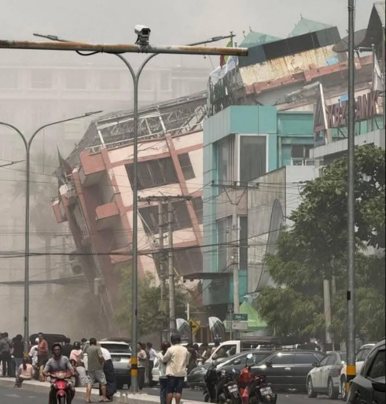 На социјалните мрежи се споделуваат снимки на кои се гледа како земјотрес тресе облакодер во Бангкок, а базенот од покривот на облакодерот се излева како водопад. Претходно „Ројтерс“, повикувајќи се на Германскиот истражувачки центар за геонауки (ГФЗ), објави дека земјотресот бил со јачина од 6,9 степени. Агенцијата, во меѓувреме, пренесе извештај на УСГС со јачина 7,7.