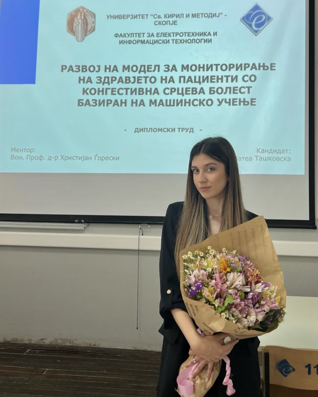 - Нивната верба во моите способности честопати ја надминуваше дури и мојата и непрекинато ме инспирираше. Дополнително, секој мал резултат и успех беше значајна мотивација за уште поголеми постигнувања. Совладувањето сложени концепти и задоволството од наоѓање решение беа многу поголеми од секој првичен предизвик. Сепак, постигнувањето и задржувањето висок академски успех бара континуирана работа и целосна посветеност, што не би го нарекла жртва, туку повеќе како инвестиција во мојата иднина. Добиеното знаење и високите оценки ми овозможија денес да бидам стипендист на EPFL. Во последните години од моите додипломски студии почнав да се фокусирам на практичната примена на она што дотогаш го имав научено. Оваа фаза од моето образование вклучуваше ангажман во различни проекти во и надвор од државата, како и пракса на институтот „Јожеф Стефан“ во Словенија. Добиените искуства беа клучни за мојата определба за усовршување во областа на вештачката интелигенција и машинското учење и ја поттикнаа во мене желбата за научноистражувачка работа - ни споделува Матеа.