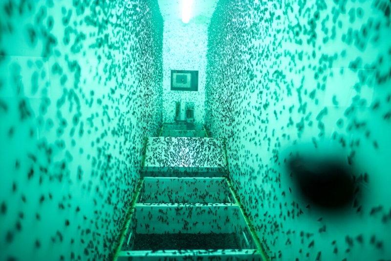 Сепак, „Енорм“ - кој започна со производство со помош на јавни и приватни инвестиции - сè уште има скромна книга на нарачки. Под тиркизните флуоресцентни светла, милиони црни муви зујат во околу 500 пластични кафези.