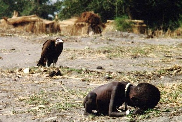 Момчето се обидувало да стаса до центарот на ОН во Ајод во Јужен Судан, каде што имало кујна за гладни. Фотографијата доби Пулицерова награда во 1994 година.