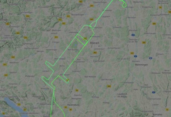 Неговиот лет траел повеќе од еден час во воздушниот простор меѓу градовите Фридрихсхафен и Улм.