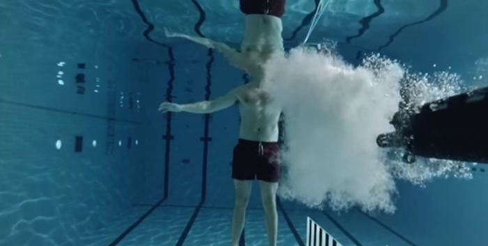 -Потешко е да се создаде движење во водата отколку во воздухот бидејќи молекулите на водата се погусти од молекулите на воздухот. За да се покажат разликите во отпорот физичарот Андреас Вал стоеше пред оружје кое беше поставено под вода и пукаше во себеси - се наведува во описот од неговото видео.