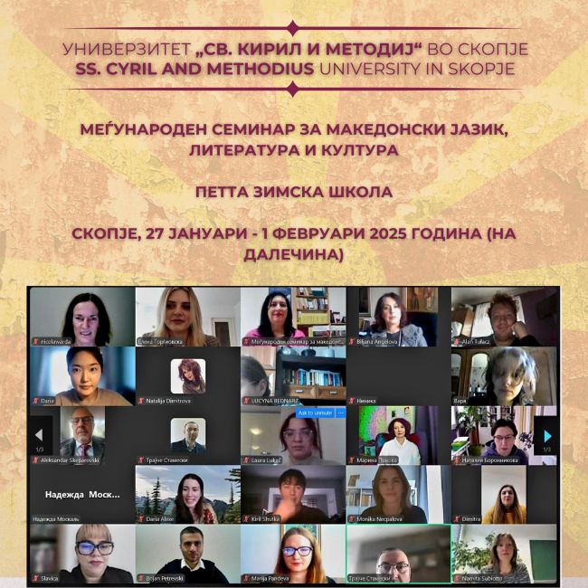 Со свечено отворање започна еден од најзначајните настани за негување и афирмација на македонскиот јазик - Петтата зимска школа на Меѓународниот семинар за македонски јазик, литература и култура (МСМЈЛК) при Универзитетот „Св. Кирил и Методиј“ во Скопје (УКИМ), на кој учествуваат 100-тина македонисти од 18 земји од светот: Австралија, Албанија, Бугарија, Италија, Монголија, Народна Република Кина, Полска, Романија, Руската Федерација, САД, Словачка, Словенија, Србија, Турција, Украина, Унгарија, Хрватска и Чешка Република.