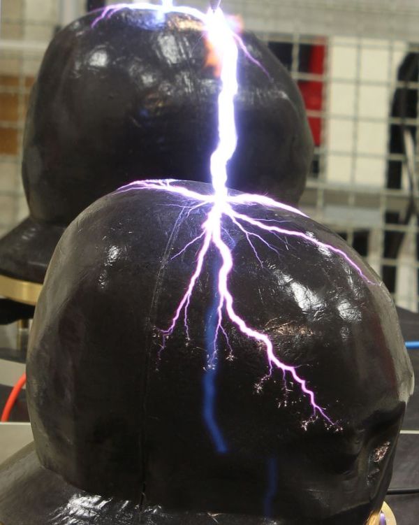 Научниците конструирале лажни човечки глави дизајнирани да ги реплицираат својствата на електричната спроводливост на вистинските човечки глави. Едната глава се чувала на суво, а другата била натопена со вештачка дождовница. Потоа двете глави биле подложени на силна електрична струја.