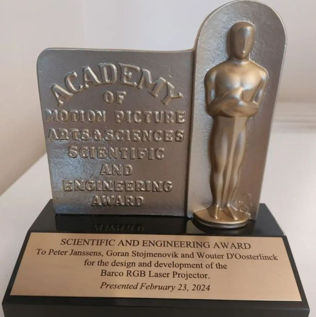 Наградата, позната во светот на филмската технологија како „технички“ „Оскар“, е признание за тројцата инженери за нивниот траен придонес за развојот на ласерски проектор за проектирање филмови во кино, кој првпат проектирал во 2014 година.
