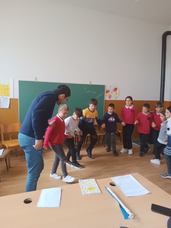 - Тие го прашуваа за неговата кариера, како научил да свири гитара, зошто? И на крај видовме како се игра Пајдушкото оро. Некои од нив го знаеја орото иако се муслиманско население, опкружени се со македонско, па доаѓаат во допир и со македонската култура. Заиграа заедно со наставникот, кој се потруди да им помогне, да им покаже некои чекори во изведбата и сите се фатија за раце да играат. Голема е ползата од вакви часови кои може успешно да се реализираат доколку претходно добро се подготват. На децата треба да им биде интересно на час. Да излеземе од класичното предавање - рече Адамовски.