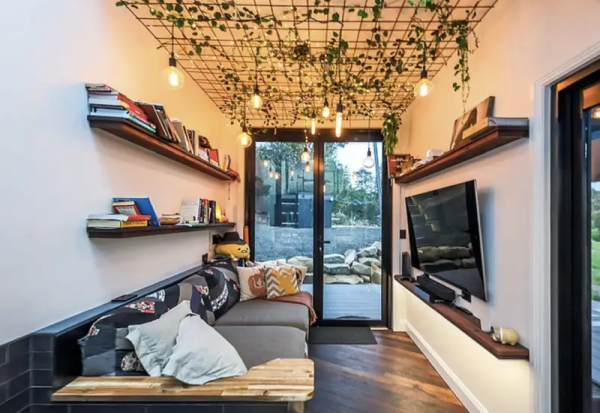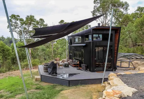 Куќата од 22 метри квадратни има впечатливи црни надворешни ѕидови, голема тераса со тенда, целосно опремена кујна и простор за живеење распореден на два спрата. Куќата е широка 2 метри, 9 метри долга и 4 метри висока.