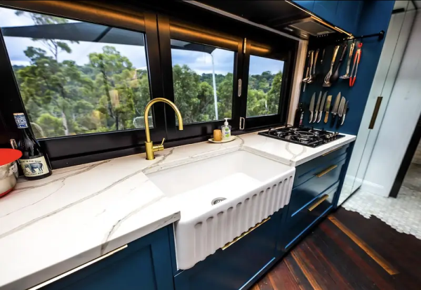 - Ги изградивме рамката и внатрешноста, но електричар работеше на електричната енергија, затоа што беше комплицирано - вели Лиза додавајќи дека Хобс, кој е сопственик на компанија за реновирање бањи и кујни, ја дизајнирал и направил нивната бања.
