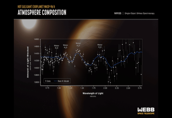 Оваа потрага по егзопланета погодна за живеење е веќе во тек, со првото читање на „Џејмс Веб“ во јуни 2022 година за џиновската гасна егзопланета WASP-96b. Оваа планета има температура од над 500 Целзиусови степени и е многу понадуена од која било планета што орбитира околу нашето Сонце. Нејзиниот спектар покажа значително присуство на вода и, уште поизненадувачки, облаци и магла.