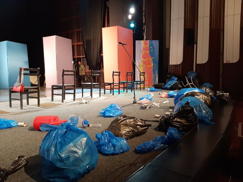 - Во секоја сцена, и кога се на училиште и на ливада, нонстоп некој фрла ѓубре, и сите сложно заедно го чистат светот. Во претставата ќе има премногу ѓубре, опипливо реално како што знае да биде по депониите, улиците, тротоарите. Со жив пример на сцена ќе покажеме како го собираат за да биде убаво и чисто - вели Ристовски.